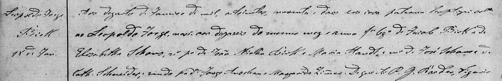 *Jacob Birck aparece em alguns documentos sem o "C" (Birk) e outros "com o C" (Birck), considerando a maioria dos documentos de batismo onde o Birk é escrito "sem o c", o correto pra ele é "Birk" (em seu óbito está como "Birck").